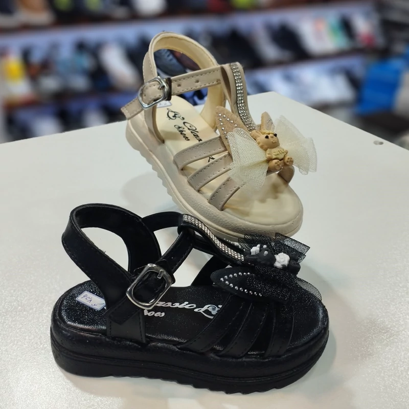 صندل تابستانی دخترانه با رویه چرم صنعتی و زیره پیو بسیار نرم و راحت در دو رنگ مشکی و کرمی و سایز بندی 26 تا 31 لطفا قبل از ثبت سفارش موجودی بگیرید