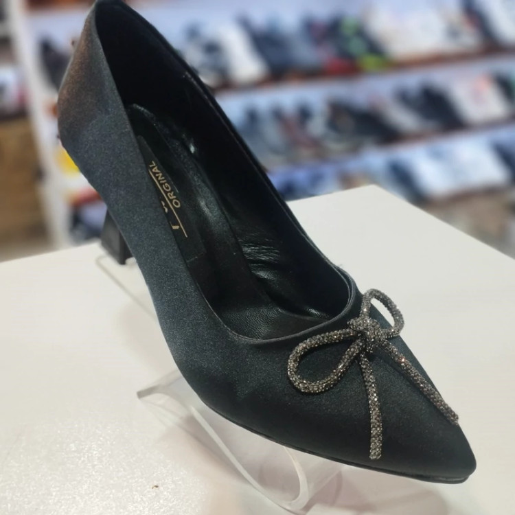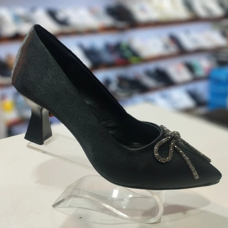 کفش مجلسی زنانه پاپیون نگینی با رویه ساتن با پاشنه 7 سانت تک رنگ مشکی و سایز بندی 37 تا 41 لطفا قبل از ثبت سفارش موجودی بگیرید.