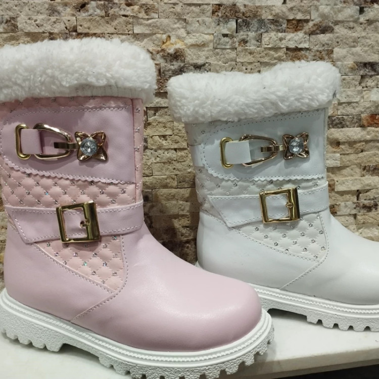 بوت دخترانه خز دار با زیره پیو دور دوخت شده. در سه رنگ مشکی و سفید و صورتی.