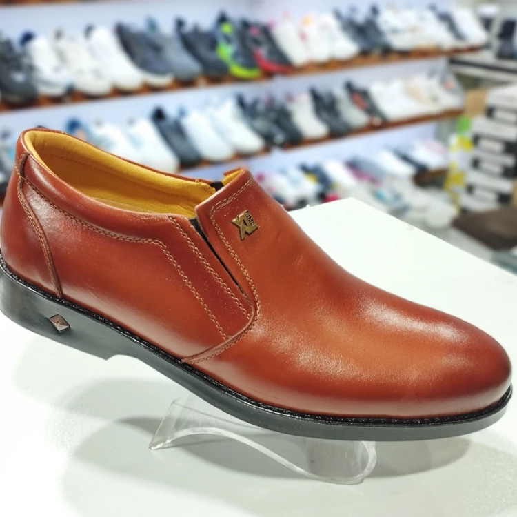 کفش تمام چرم مردانه کشی ساده فیلر با رویه چرم طبیعی گاوی و آستر چرم طبیعی گوسفندی و زیره پی وی سی فیلر سایز بندی ۴۰ تا ۴۴