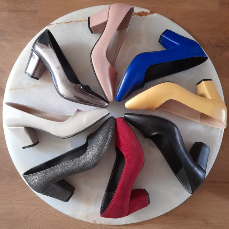 کفشه مجلسی پاشنه 5 سانت با زیره پی وی سی و رویه چرم صنعتی و جیر و لمه در رنگ بندی مشکی و زرد و کرمی و قرمز و کالباسی با سایز بندی 37 تا 41 لطفا قبل از ثبت سفارش موجودی بگیرید
