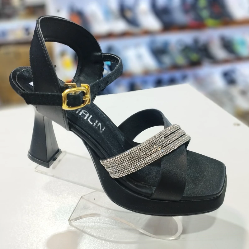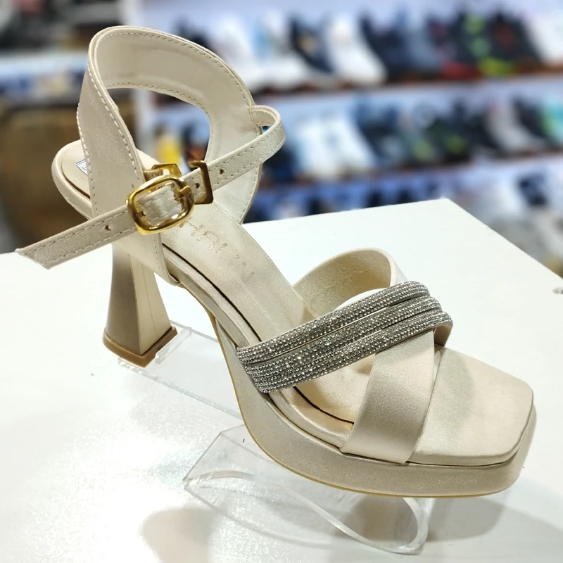 صندل زنانه با لژ یک سانتی و پاشنه 10 سانتی و رویه پارچه ای ساتن در دو رنگ مشکی و کرمی و سایز بندی 36 الی 40