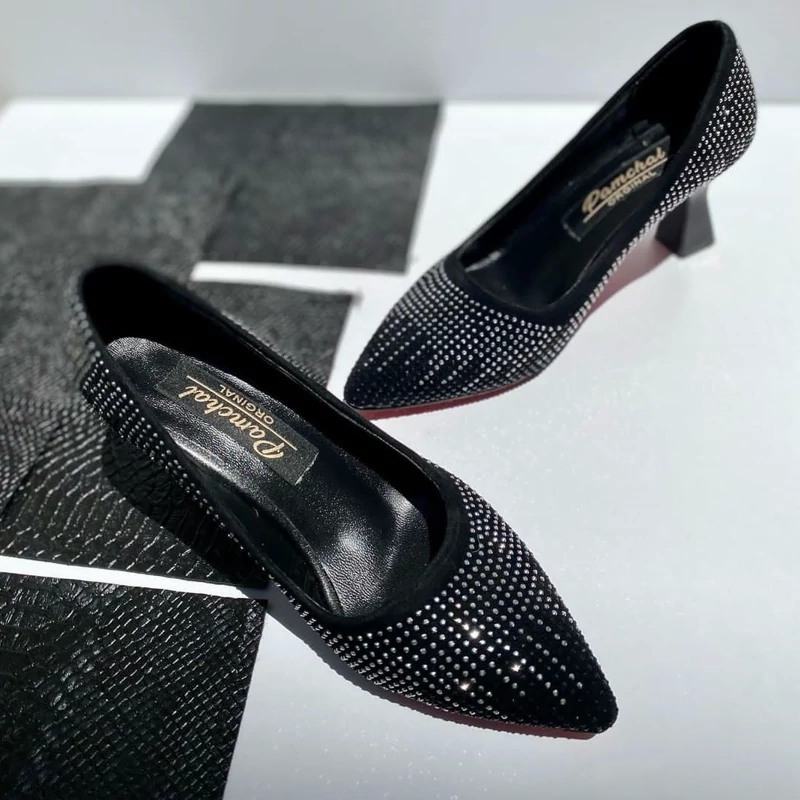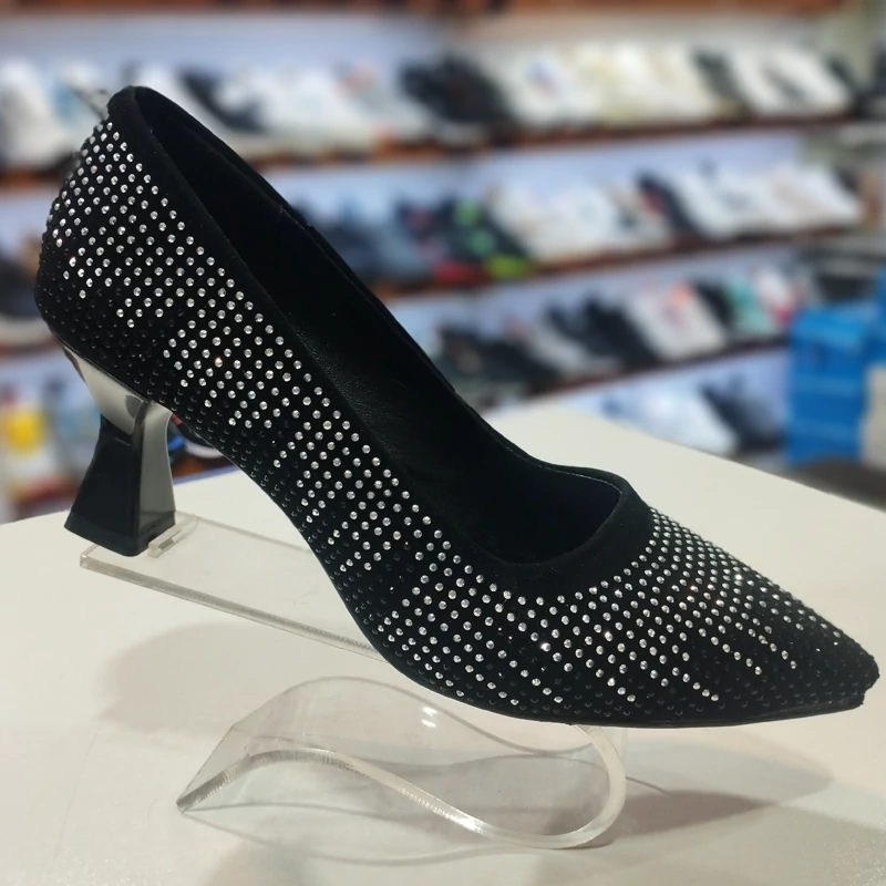 کفش مجلسی زنانه نگینی با پاشنه 7 سانت تک رنگ مشکی و سایز بندی 37 تا 41 لطفا قبل از ثبت سفارش موجودی بگیرید.